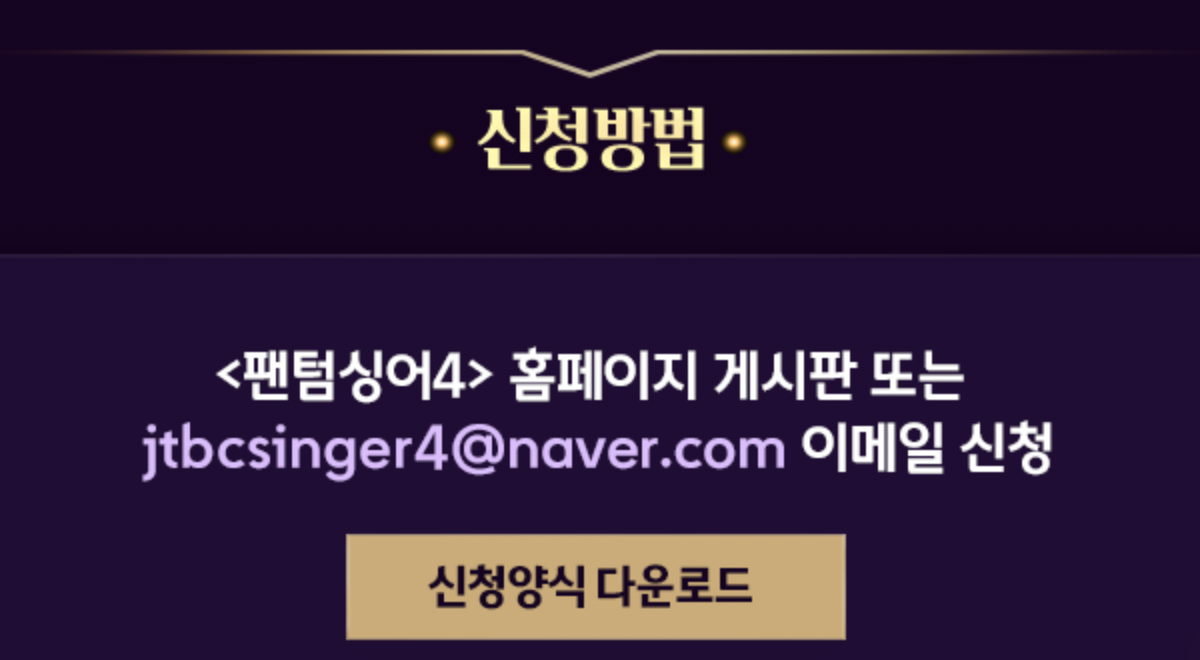 팬텀싱어 참가를 하고자 했었는데, 아직도 참가 여부를 결정하지 못한 분이 있다면, 위 링크로 들어가서 참가 신청 조건을 확인하고 빠르게 신청을 하시기 바란다.