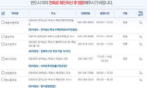 다만 검색되는 약국명과 주소, 전화번호, 운영시간을 꼭 확인을 하시고, 전화는 꼭 한 번 해 보는 것이 좋습니다.